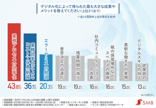 業務効率化やコスト削減が、デジタル化の主な成果として実感されていることが明らかになりました。