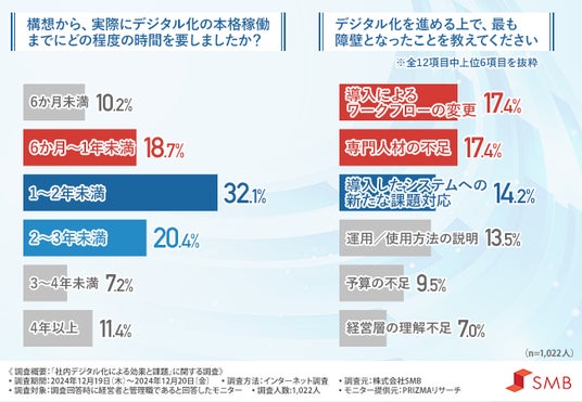 「構想から、実際にデジタル化の本格稼働までにどの程度の時間を要しましたか?」と質問したところ、