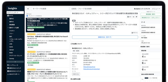 Insights を通じて、資金調達ニュースから企業情報を取得した画面(イメージ)