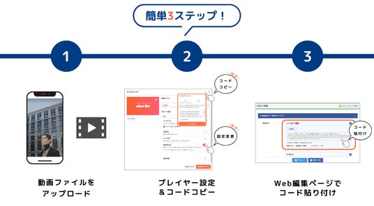 以下の3ステップで、簡単に高画質動画をWebサイトに埋め込むことができます。
