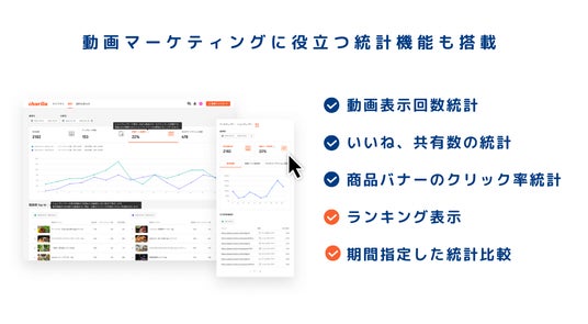 さらに、2つの期間を比較して効果を測定できる統計比較機能や、最も効果的な動画を一目で把握できるランキング表示機能も備えています。