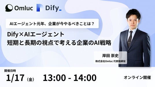 株式会社Omlucは「Dify×AIエージェント:短期的に業務効率化しながら、将来のAIエージェント時代に備える」をテーマにしたウェビナーを開催します。経営者様やDX・AI推進担当者様は必見です。