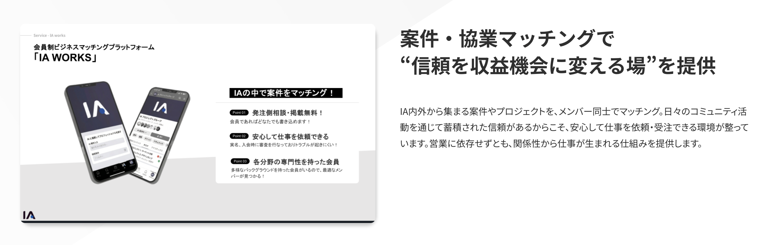最後に差がつくのは“人に紐づく価値”です。IAは、思想・専門性・発信・信用といった無形資産を、偶然ではなく積み上げ、仕事につなげるための場として立ち上げました。