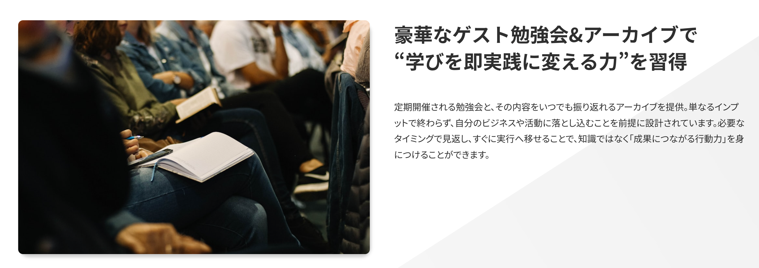 無形資産を積み上げ、それを仕事に変えていくための行動が前提となるコミュニティです。