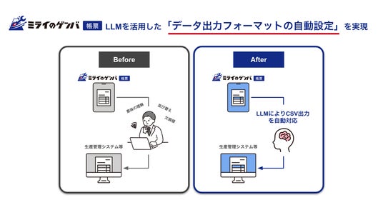 製造現場に特化した、AI現場帳票システム「ミライのゲンバ帳票」を提供する株式会社ミライのゲンバ(本社:東京都港区、代表取締役社長:佐藤 哲太 以下、ミライのゲンバ)は、LLMを活用した「データ出力フォーマットの自動設定」を実現しました。これにより、ミライのゲンバ帳票のデータをあらゆるシステムに取り込みやすくなり、多くの企業がミライのゲンバ帳票とあらゆる現場システムとをスムーズにデータ連携できるようになりました。