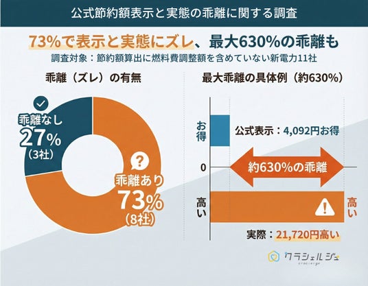 電力・ガス・インターネット回線などの生活インフラに関するシミュレーションサービスや情報メディアの運営、契約切り替えのサポートを行う株式会社クラシェルジュ(本社:東京都世田谷区、代表取締役:中島将太)は、主要な新電力会社30社を対象に、公式サイトの節約額表示に関する調査を実施いたしました。