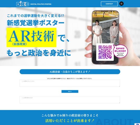 AR(拡張現実)技術による様々なサービスを提供してきた株式会社ディレック(東京都品川区、代表取締役:宮本幸一)は、デジタル政治選挙ポスターのウェブサイトにAI政治家「白鳥さちこ」を実装したことを発表しました。この新しいシステムにより、有権者は候補者の政治ポリシーや政策、候補者プロフィールについての質問や疑問をAIに直接入力し、即座に回答を得ることができます。