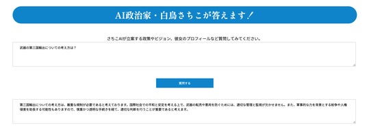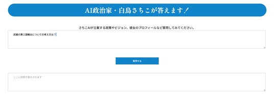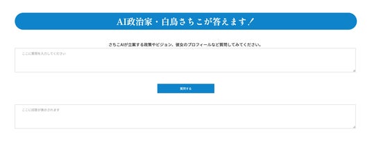 ※「白鳥さちこAI」で生成される情報には、不正確または適切ではない内容が含まれることがあります。生成される情報はOpenAI社のGPTによるものであり、弊社の公式見解や政治的立場を述べるものではありません。