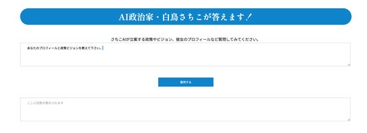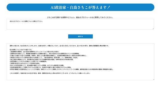 ex:「あなたのプロフィールと政策ビジョンを教えて下さい」と質問入力をします。