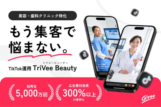 SNS運用代行を手がけるGivee株式会社(本社:東京都、代表取締役:村上卓斗)は、1再生3円でTikTok運用を代行する「TriVee」サービスから派生した、美容・歯科クリニック特化型の新サービス「