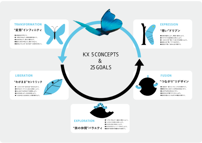 人生100年時代の企業のあり方、企業と個人の関係を研究するために、ライフシフト・ジャパンが主催する研究会です。2018年12月から活動をはじめ、2022年1月に以下の5つのコンセプト・25のゴールを発表しました。現在はその実現を目指す社会変革ムーブメント=KX(カイシャ・トランスフォーメーション)を推進しています。