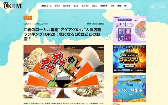 「OKITIVE」は沖縄に関するヒト・モノ・コトを軸に、あらゆる切り口で情報をお届けする沖縄エリア特化型メディアです。沖縄テレビの番組連動コンテンツと、沖縄のお出かけ情報やグルメ情報、地元のプロスポーツチーム情報やプロ野球の沖縄キャンプ情報、アナウンサーコラム、琉球鑑定士占いなどのオリジナルコンテンツを中心に、毎日5本前後の記事を更新しています。
