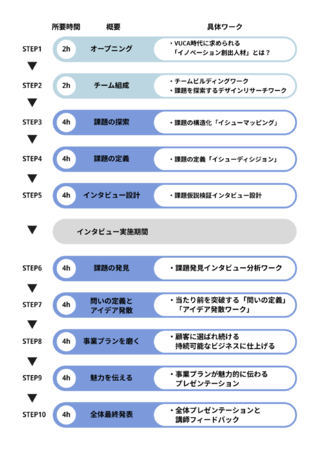 事業開発プロセスの学習と実践を繰り返し経験することで、変化が激しい今の時代に必要なマインドセット、スキルセットの体得を目指します