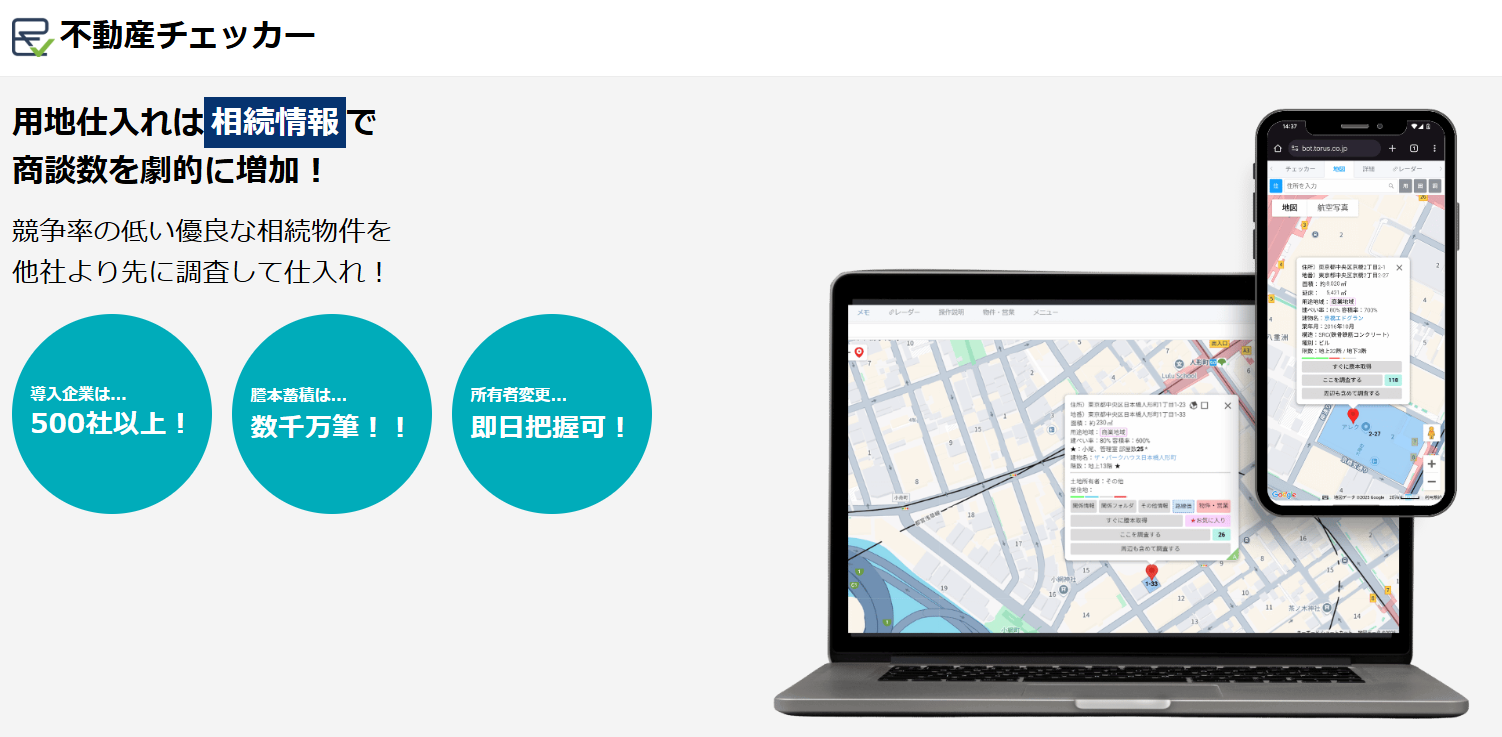 「不動産チェッカー」は、登記情報や地番・路線価・公図などを自動で取得し、