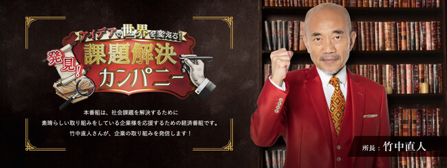 本番組では、“世界を変える可能性を秘めたアイデア”を持つ企業を発掘。竹中直人さんが、アイデア研究所の所長として、企業の担当者と対談。