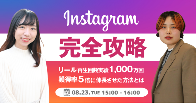 8/23(火)15:00~ オンラインにて無料開催|リール再生回数や獲得率UPの実績を持つSNSマーケティングのプロがInstagramのアカウント運用&広告運用を成功に導く戦略設計術を徹底解説
