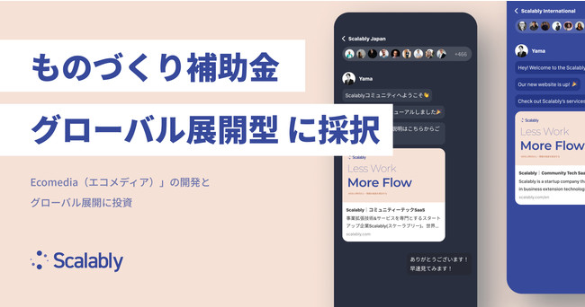 Scalably株式会社(東京都港区、代表取締役:山本 純矢)は、2021年8月から11月にかけて募集された「ものづくり補助金 第8次 グローバル展開型」に採択されました。今回交付された資金を用いてプロダクト「Ecomedia(エコメディア)」の開発とグローバル展開を行っていきます。