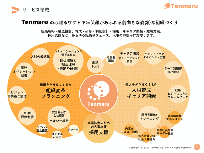 現在の事業活動や企業情報、注力することをまとめ、「心躍るワクドキな組織をつくる」Tenmaruをさらに見える化しました。