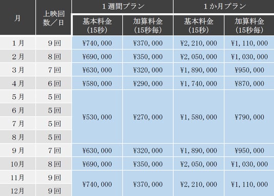 ※表示時間1分以上の場合は3割引き、2分以上の場合は4割引き