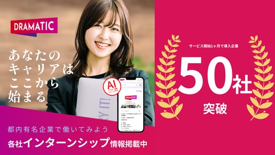 Actors合同会社(本社:東京都渋谷区、代表:井田智大)は、2024年11月20日にリリースした新しいインターン求人プラットフォーム「DRAMATIC Intern」の導入企業数が、サービス開始からわずか1ヶ月で50社を突破したことをお知らせいたします。