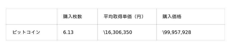 当社は、2025年3月11日付「暗号資産購入に関するお知らせ」にて開示の通り、同日開催の取締役会において、総額5億円分の暗号資産を購入する旨を決議し、2025年3月13日及び2025年4月9日付け「(開示事項の経過)暗号資産購入に関するお知らせ」にて開示の通り、累計3億円分のビットコインを購入しました。