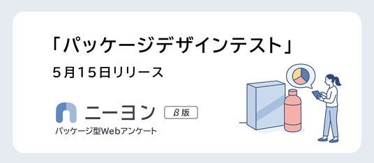 ニーヨン」(β版)において、商品パッケージデザイン案を評価する「パッケージデザインテスト」を提供開始します。ニーヨンが提供する6つ目のメニュー(パッケージ)となります。