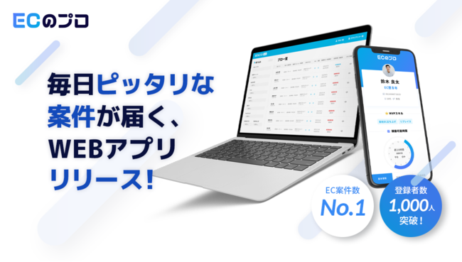 2022年2月にβ版をスタートし、7月に正式リリースをしたECのプロは、サービス開始後半年以内に登録プロ数1,000名を突破し、現在も日々多くの方にご登録いただいております。