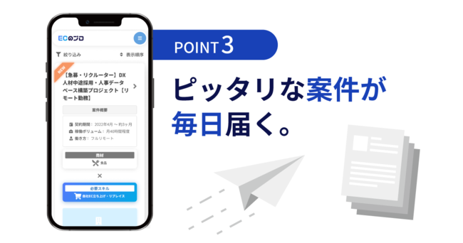 ECのプロには多くの魅力的な案件が日々寄せられています。その中からあなたにマッチした案件情報が届きます。