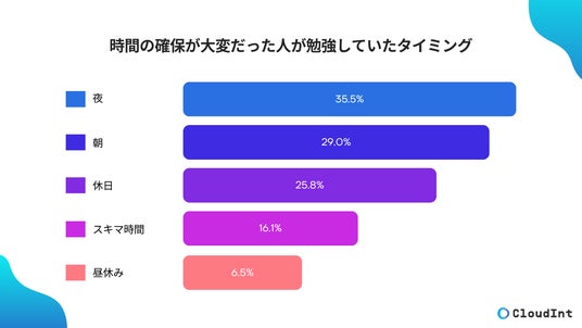時間の確保が大変だった人の内、35.5%が夜に学習していたと回答