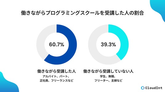 調査によると、働きながら社会人向けプログラミングスクールを受講した人は全体の60.7%に上ることが分かりました。