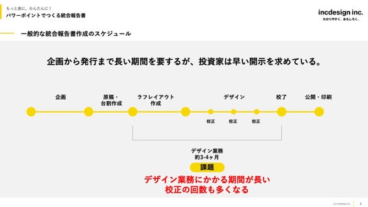 IRツール、コーポレートツールのデザインを提供するインクデザイン株式会社(本社:東京都墨田区 代表取締役:鈴木潤)は統合報告書制作の効率化が図れる「パワーポイントで作る統合報告書で省力化ソリューション」を提供します。