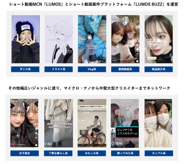 ▼クリエイター数2,000人超えの国内最大級ショート動画MCN『LUMOS』
