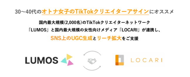 国内最大規模の女性向けメディア「LOCARI」を運営する株式会社Wondershake(本社:東京都目黒区)と国内最大規模のTikTok MCN「LUMOS」を運営する株式会社WAND(本社: 東京都中央区、以下『当社』 https://thewand.jp/)は、30-40代の女性TikTokクリエイターのアサイン、PR投稿・ギフティング・記事コンテンツ作成・広告配信を行う新プランを共同でリリースしました。