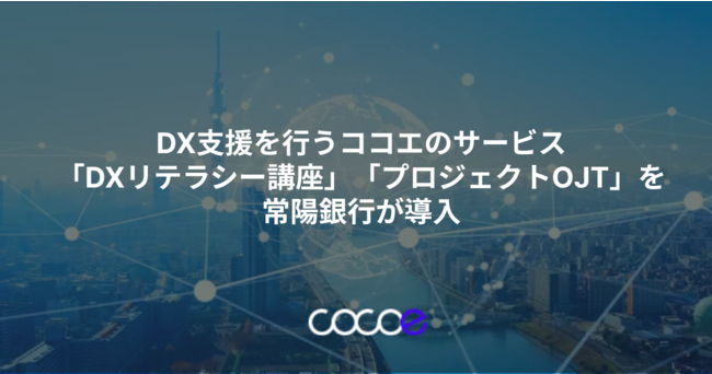 株式会社ココエ( 本社:東京都港区、代表取締役社長:近藤恵子、以下「ココエ」)は、株式会社 常陽銀行(本社:茨城県水戸市、取締役頭取:秋野哲也、以下「常陽銀行」)に、行内のDX人材を育成するため「DXリテラシー基礎講座」「プロジェクトOJT」をご提供し、デジタル人材の成果に貢献したことをお知らせいたします。