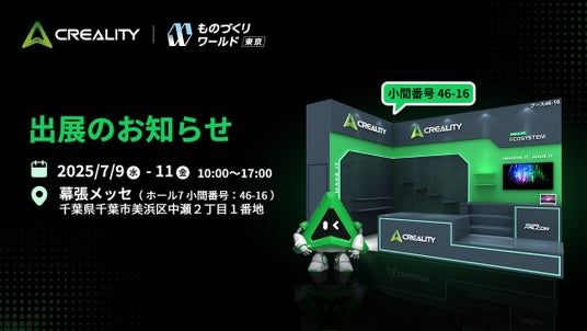 3Dプリンター業界をリードするグローバルブランド「Creality(本社:中国・深圳)」は、2025年7月9日(水)~11日(金)に幕張メッセで開催される「第37回 ものづくりワールド[東京]」に出展いたします。本展示では、Crealityが推進する包括的な3Dプリント・エコシステムとともに、K2シリーズの最新機種「K2 Pro」を日本で初披露いたします。