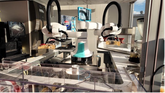 このロボットは左右の腕を駆使してドリンクを同時に作成し、短時間で高品質な提供を実現します。