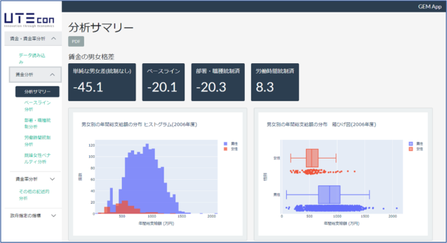経済学・会計学・経営学などのアカデミックな知見に基づくコンサルティングサービスを提供する東京大学エコノミックコンサルティング株式会社(本社: 東京都文京区、代表取締役社長: 川原田陽介、以下UTEcon)は、企業が自社における男女賃金差の有無を判断し、原因を理解して必要な行動を取れるよう支援するためのソリューション『GEM App (男女賃金格差診断ツール)』(ジェムアップ; 以下、GEM App)の提供を開始しました。