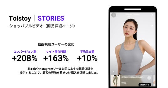 Tolstoyを活用することで、商品の購入を促進する多様な動画コンテンツをECサイトに手軽に実装。結果、コンバージョン率や顧客単価の向上につながりました。