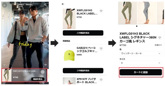動画の視聴からシームレスに購入ができる点です。動画視聴時に紐づいた商品が表示され、他ページへ遷移することなく商品情報を閲覧し、カートに追加することができます。動画から購入までの導線がスムーズなため、コンバージョン率の向上につながります。