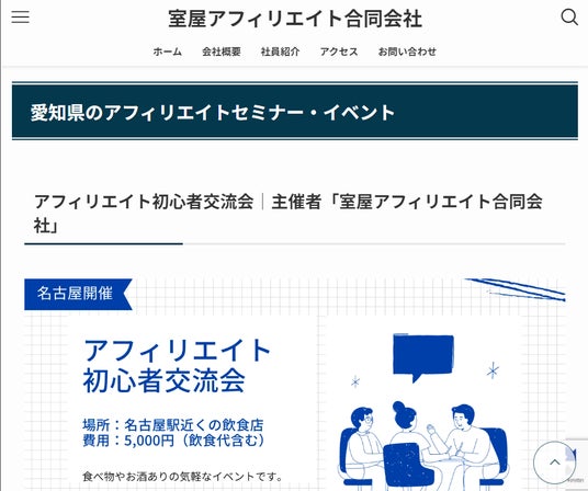 室屋アフィリエイト合同会社が提供するセミナー・イベント告知サービスは、アフィリエイトや広告、ライティング、マーケティング関連の情報を無料で告知できるサービスです。