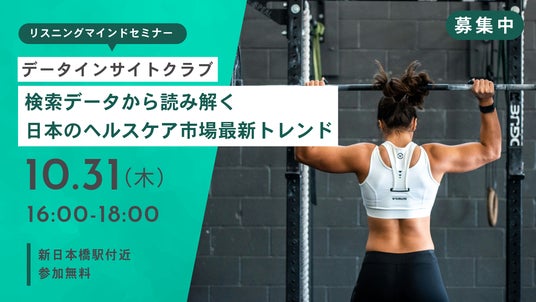 2024年10月31日(木) 16~18時 Time With 日本橋にてListening Mind活用セミナーでは、“日本のヘルスケア市場におけるジム・睡眠グッズ“というテーマで消費者の検索意図と行動を読み解きます。
