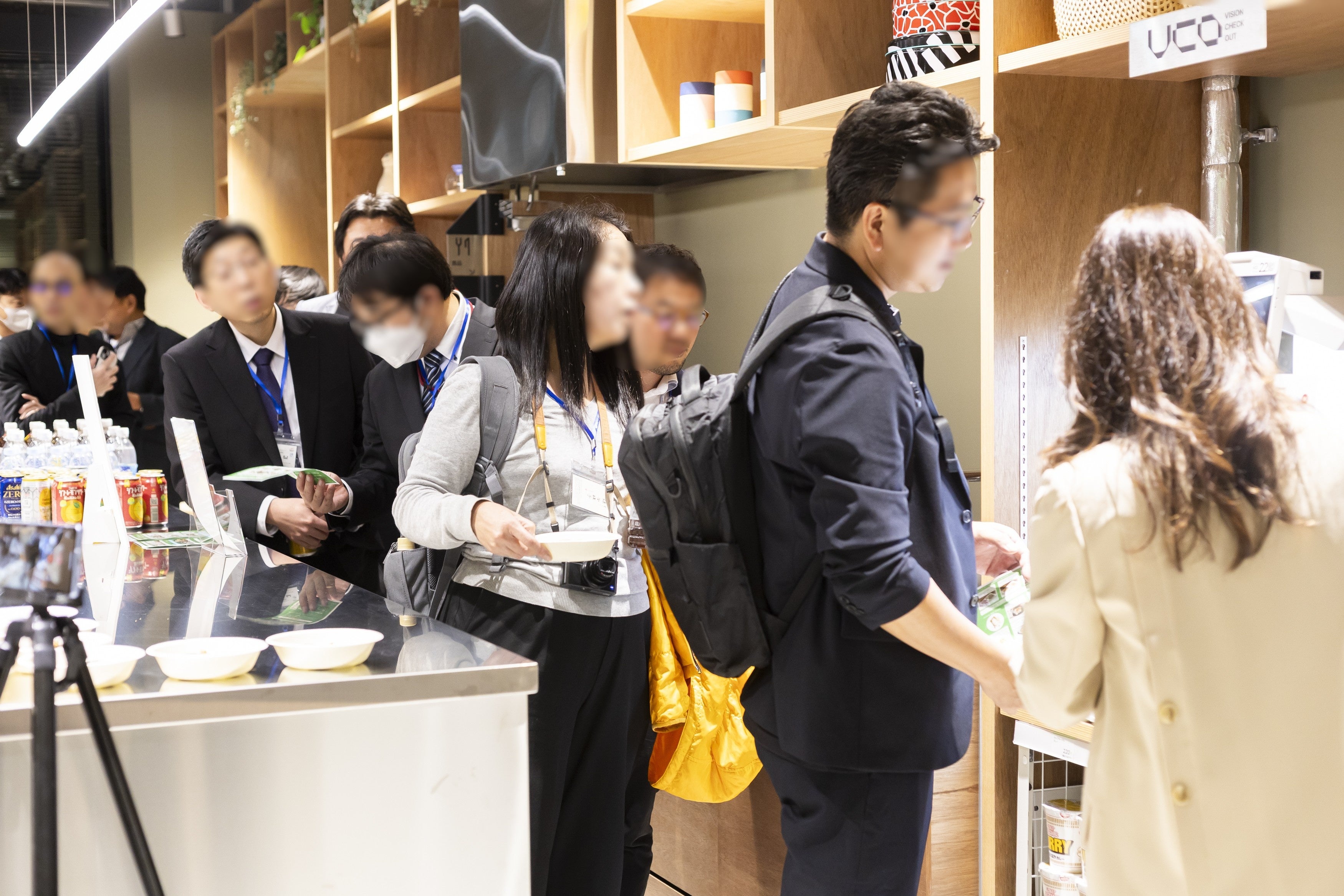 セミナー終了後、SHOKU NOMA内のVISION CHECK-OUT実証実験ストアで、参加者30社・60名以上が飲み物や食べ物の購入を体験しました。決済は一人平均10秒で完了し、ストレスフリーな買い物体験が実現されました。