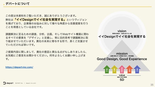 株式会社デパートでは「イイDesignでイイ社会を実現すべく」、企業やサービスにおける最適な形で、誰もが使いやすいWebサイトの実現を目指しています。