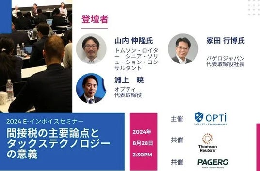 「間接税の主要論点とTaxテクノロジーの意義」セミナーの開催消費地課税やデジタルサービスタックスなどの間接税の昨今の主要論点と、グローバルなビジネスで利用できるタックステクノロジーであるトムソン・ロイター社の税務エンジンとパゲロジャパン社のE-Invoiceシステムをご紹介しました。(2024年)