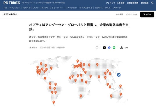 アンダーセングローバルのコラボレーティングファームに2024年、オプティは世界中で17,000人以上の専門家を擁し、メンバーファームおよび提携ファームを通じて、世界170カ国475箇所以上に拠点を有する巨大ファームであるアンダーセングローバルの日本のコラボラーティングファームとなりました。