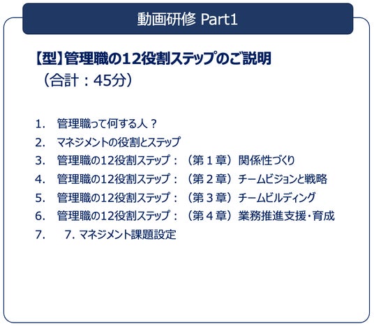 管理職が自分らしく活躍する早期戦力化&変革のための、管理職の「型」と「成長法則」をクラス参加前に学びます。