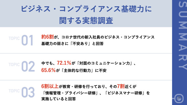 約6割が新入社員のビジネス・コンプライアンス基礎力の弱さに「不安がある」と回答