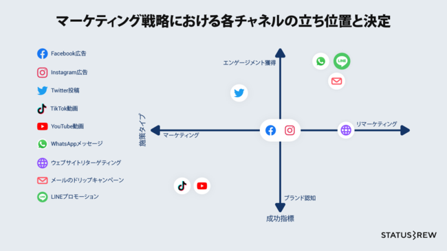 メッセージング戦略に重きを置くマーケティングチャネルに近しい部分と、常に顧客と様々な手段でエンゲージし続けることができるという最大の特徴かつメリットを兼ね合わせています。