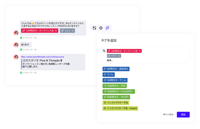 ソーシャルメッセージにタグを付与することで、メッセージの精査を行うだけではなく、クエリの内容とチーム体制でのカスタマーサポートのパフォーマンスをレポート化します。