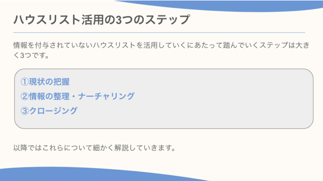 「もうリードを無駄にしない!商談化率を3倍にする究極のリードリサイクル術」のスライドでは、無駄なリードを生み出すことなく、リードの有効活用により、新規顧客獲得につながるためのメソッドをまとめています。